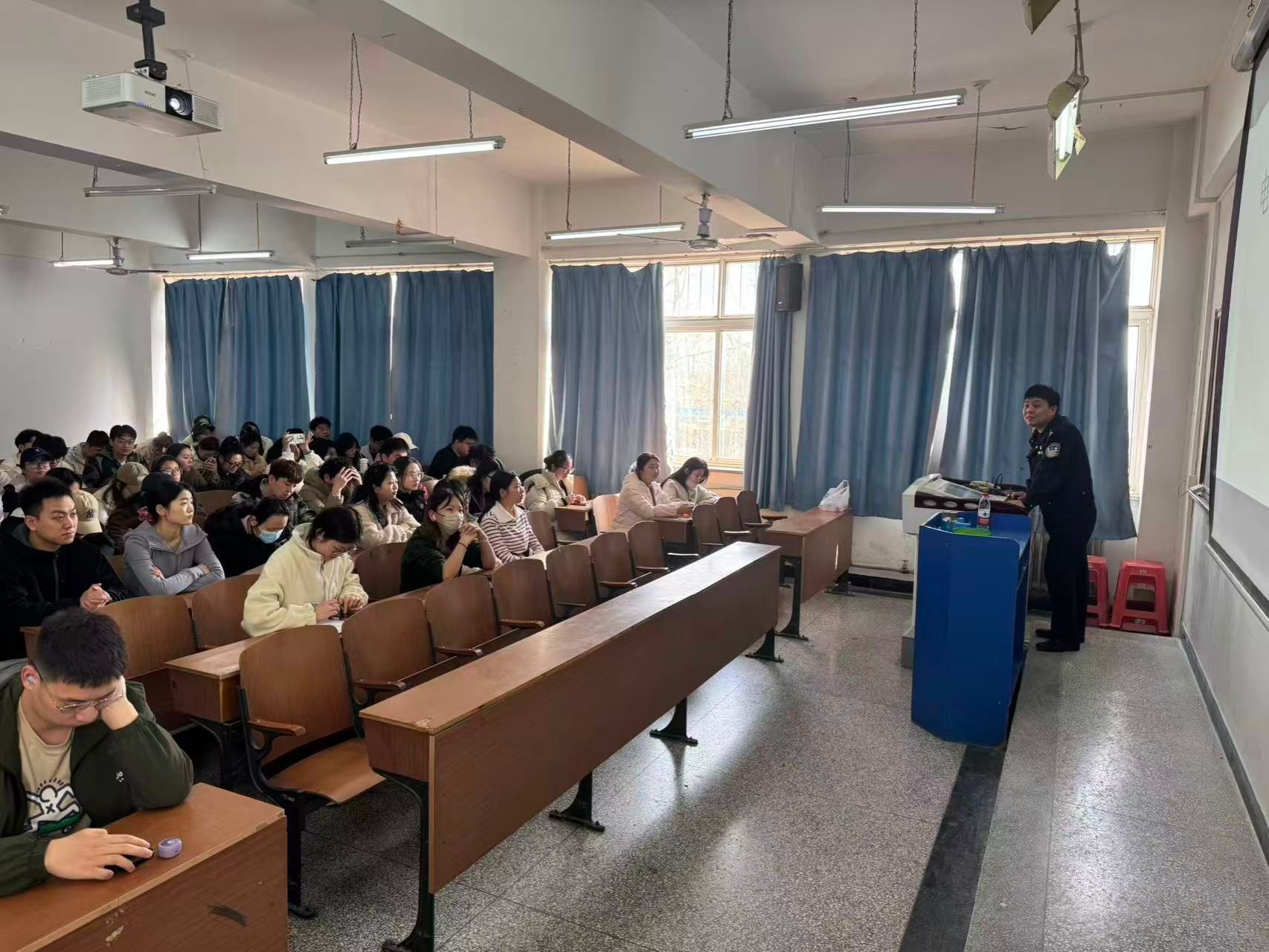 3月11日,由校党委保工部、研工部主办的研究生防范电信网络诈骗宣传讲座在西校区学术楼203教室举行。讲座结合近期涉研究生群体的真实诈骗案例与新型作案手法,以通俗易懂的方式开展了一场内容充实、针对性强的反诈安全警示教育。