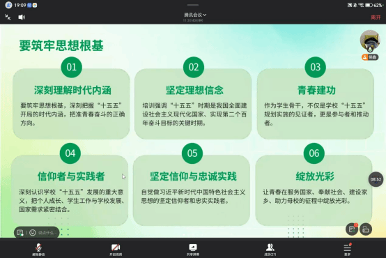 一是筑牢思想根基,精准把握时代内涵。作为青年学生中坚力量,要深刻认识“十五五”规划重大意义,坚定理想信念,自觉做习近平新时代中国特色社会主义思想的坚定信仰者和忠实践行者,把个人成长与学校高质量发展、国家战略需求紧密结合,树立正确世界观、人生观、价值观,永葆青年学子初心本色。